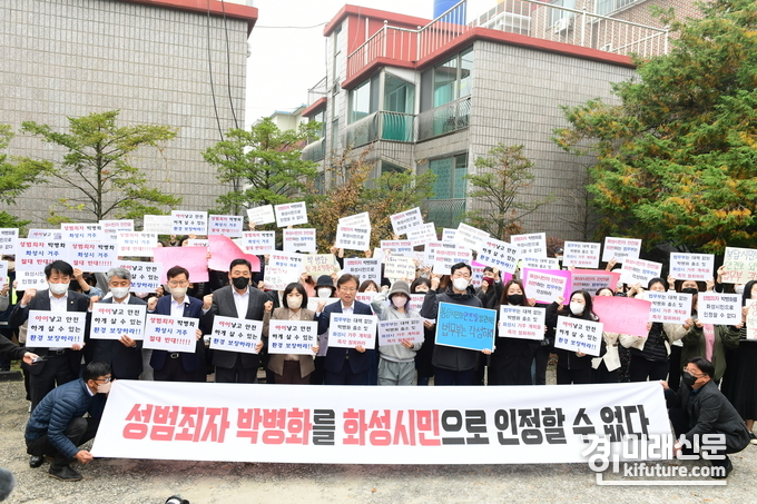 수원 발발이로 알려진 연쇄 성폭행범 박병화 40가 31일 출소한 가운데 새 거주지로 경기도 화성시를 선택한 것으로 알려졌다. 이들은 성범죄자 박병화 화성시 거주 절대 반대 법무부는 대책 없는 박병화 출소 및 화성시 거주 계획을 즉각 철회하라 아이 낳고 안전하게. 1 day ago게재 일자.